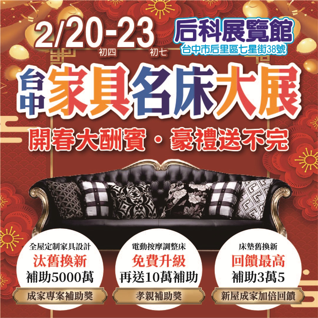 新年新氣象,金馬奔騰好運到,過年走春逛街就來家具年貨大街,不論是單品換新還是全屋配置,精選百款家具沙發名品驚爆下殺一折起,讓您輕鬆享受美好新年生活,再加碼來就送八萬元專屬紅包禮。
